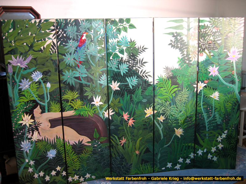 Handgefertigte und handbemalte Paravents (Trennwände) 1 bis 5 teilig, aus hochwertigen Materialien mit doppel Scharnieren.